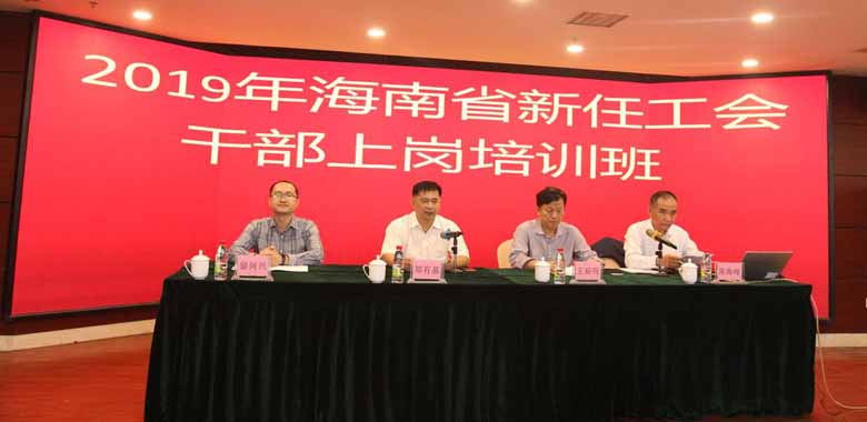 3月26日,2019年全省新任工会干部培训班在海口顺利开班,省总党组成员、副主席郑有基,省总党组成员、副主席、经审委主任王裕明出席开班仪式。