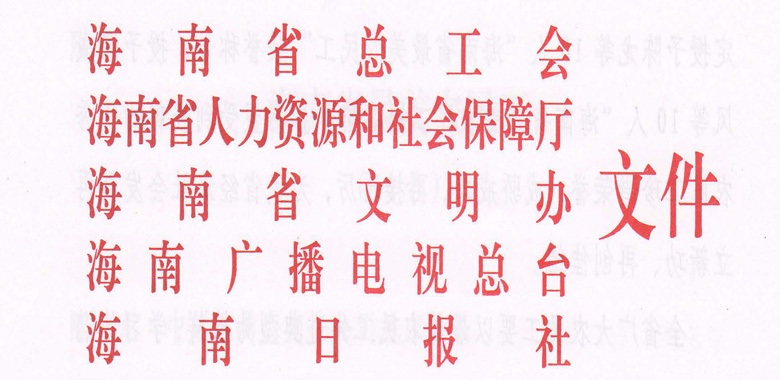 关于表彰海南省最美农民工的决定(琼工联〔2019〕1号)