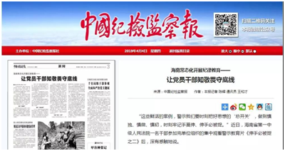 与此同时,海南省纪委监委充分利用海南廉政网、“海南廉政”微信公众号等平台,构建立体化纪律教育网络,点名道姓通报曝光典型案件,发挥审查调查警示和震慑作用,教育引导广大党员干部做到心有所畏、言有所戒、行有所止。