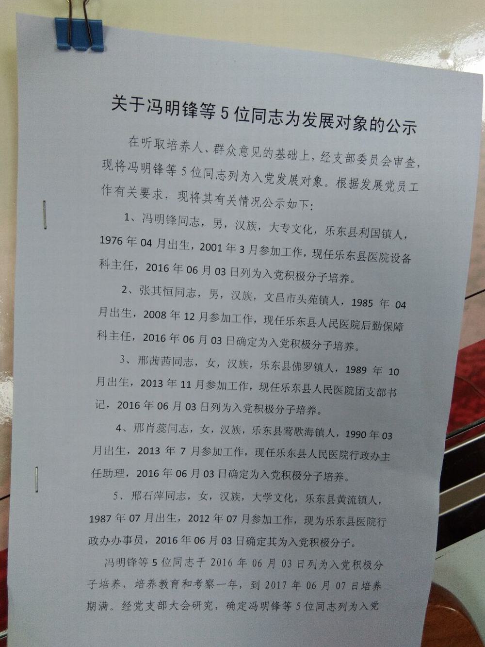 发展党员公示