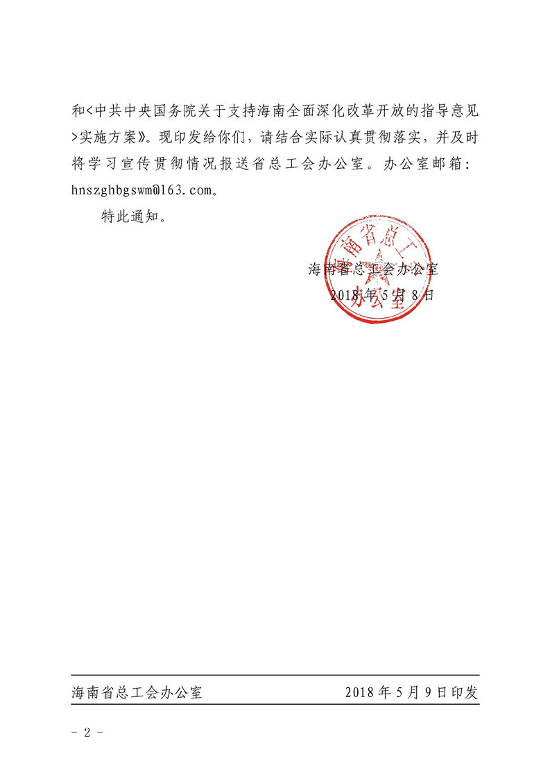 关于开展2018年“送清凉”维权关爱活动的通知(琼工办发〔2018〕87号)