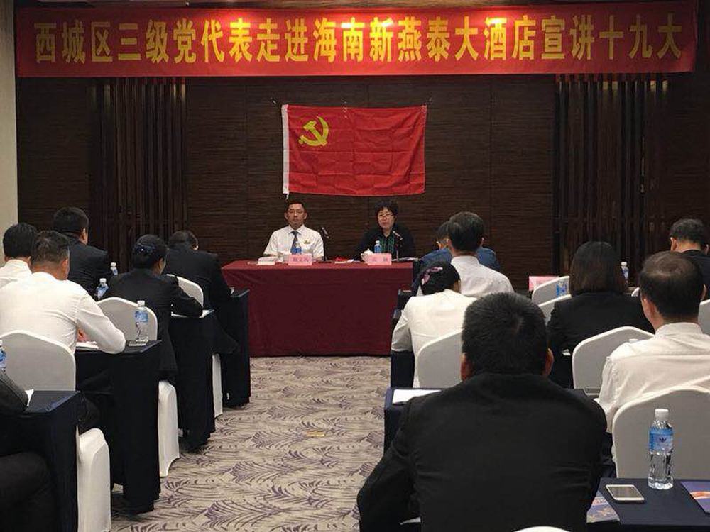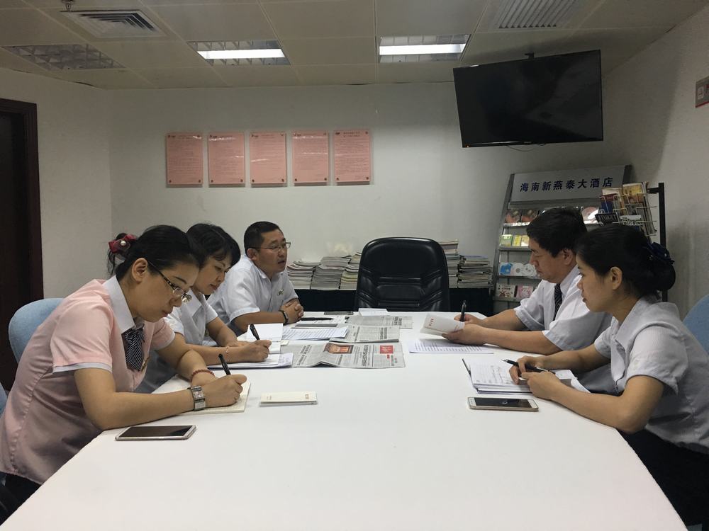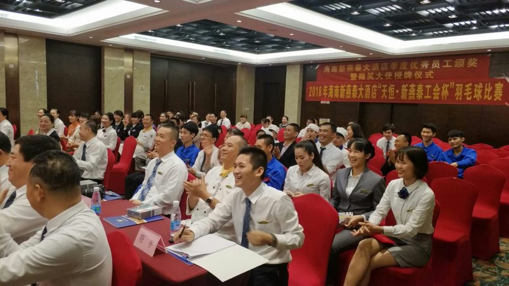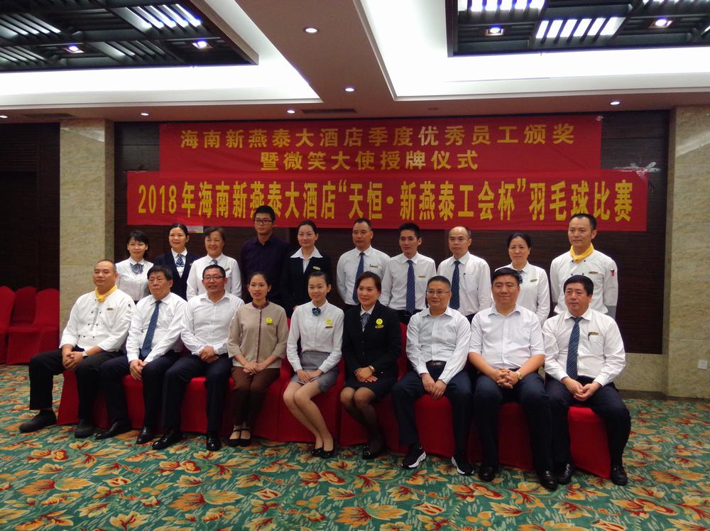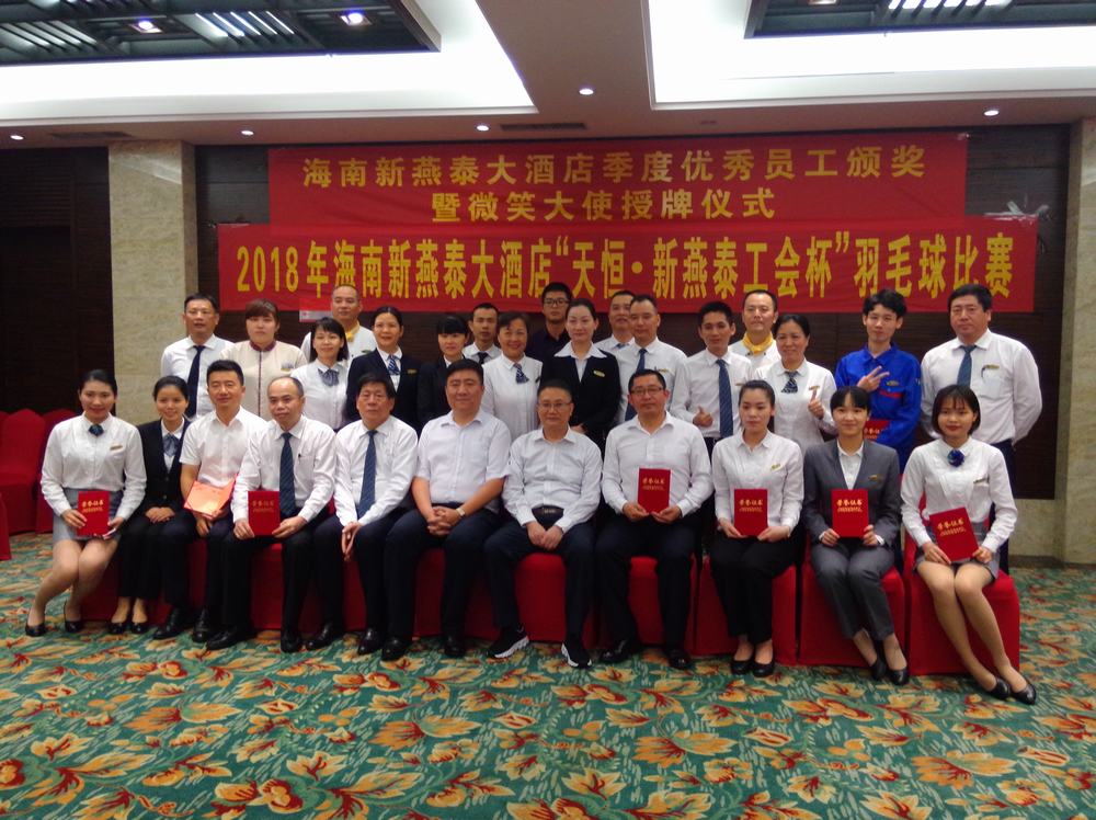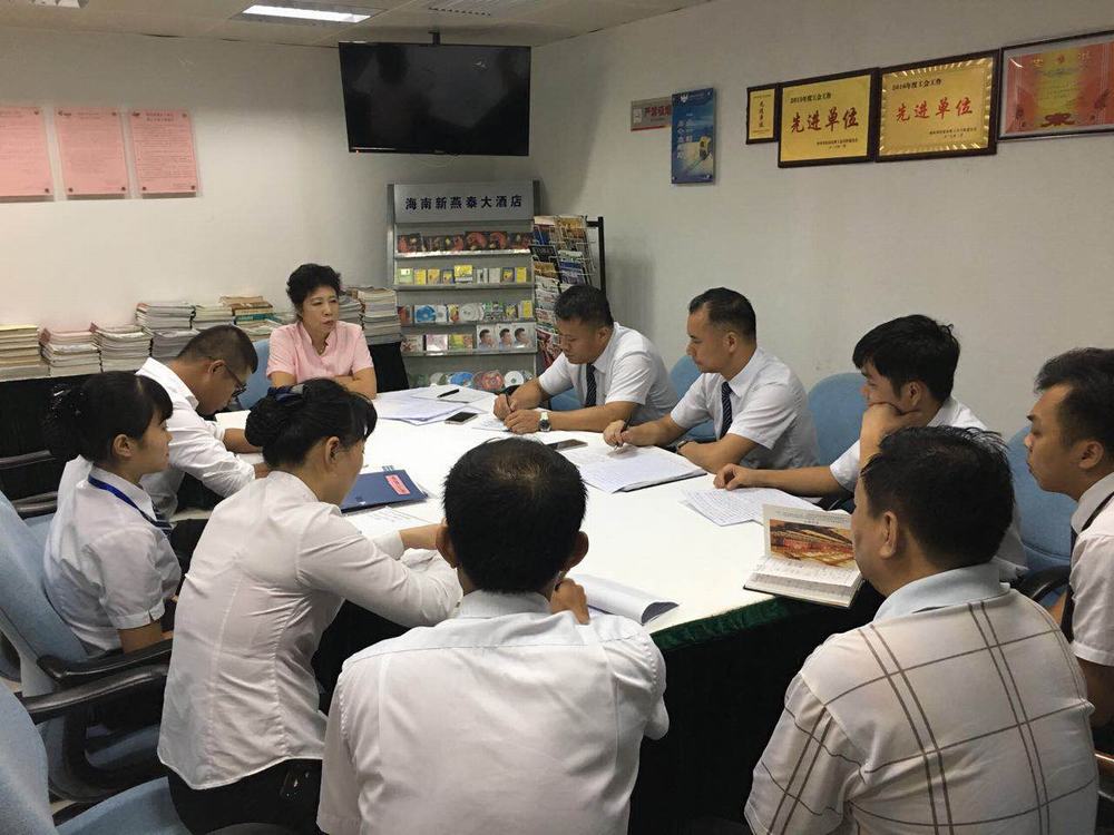“勇当先锋,做好表率”共建美丽新燕泰 2018年9月12日,北京驻琼党委书记王世新来酒店与支部成员座谈 2018海口市青年服务技能大赛餐厅服务员比赛 2018海口市青年服务技能大赛中西厨烹饪比赛 2018海口市青年服务技能大赛理论知识比赛 2018年8月15日,参观叶剑英故居 2018年6月7日,支部委员学习习近平总书记4.13重要讲话及中央12号文件精神 2018年海南新燕泰大酒店“天恒.新燕泰工会杯”羽毛球比赛 2018年海南新燕泰大酒店“天恒.新燕泰工会杯”羽毛球比赛 2018年海南新燕泰大酒店“天恒.新燕泰工会杯”羽毛球比赛 2018年5月29日,酒店党支部组织酒店管理层人员,工会委员、14名写入党申请书的积极分子走进海南省博物馆参观,参观了海南建省办经济特区30周年成就展,了解海南的发展历史以及在海南省改革开放和社会主义现代化建设方面所取得的成就。 酒店党员合影 酒店工会委员合影 2018年游泳比赛 2018年拔河比赛 2018年“天恒·安康杯”消防技能比赛 2018年5月,安康杯培训 2018年4月18日第一季度优秀员工颁奖暨微笑大使授牌仪式 常务副总经理与总办负责人签订“海南新燕泰大酒店有限公司2018年部门廉政建设责任书”。 2017年金秋助学 北京西城区三级党代表走进海南新燕泰大酒店,宣讲十九大精神 酒店支部组织入党积极分子畅谈参观“海口琼崖第一次会议会址”感想 为庆祝中国共产党成立96周年,酒店支部组织召开“七一”党员及入党积极分子座谈会 中国共产党成立96周年座谈会现场 支部民主生活会 北京西城区三级党代表走进海南新燕泰大酒店,宣讲十九大精神 2017年7月31日,酒店支部委员会组织在编党员、入党积极分子、酒店工会委员参观“海口琼崖第一次会议会址” 2018年8月8日,马东旭赴海南矿业工会调研 2018年8月8日,马东旭赴昌江调研扶贫工作 2018年8月7日,王裕明到基层开展 2018年8月6日,海南省总工会赴澄迈开展2018年禁毒宣传教育暨送琼剧下基层活动 省教科文卫邮电工会开展2018年 2018年7月30日,省机械能源石化医药工会 开展2018年“送清凉”活动 2018年7月30日,感恩祖国拥抱北京 海南54名农民工子女参加2018阳光少年成长营 2018年7月30日,郑有基到基层联系点调研督导工作 2018年7月30日,省农林水利交通建设工会开展2018年“送清凉”活动 2018年7月30日,省总工会机关第四党支部举行“七一”主题党日活动 2018年7月25日,王全出席澄迈县十大工匠颁奖暨澄迈县总工会2018年助力扶贫育婴师培训班结业典礼 2018年7月19日,海南省工会第七次代表大会闭幕,闭幕会表彰了海南英利新能源有限公司等20家海南省模范职工之家、琼海人民医院急诊科工会小组等20家海南省模范职工小家、朱晓梅等20位海南省优秀工会工作者、黄宏超等20位海南省优秀工会积极分子、王小荣等10位海南省优秀工会之友 2018年7月19日,海南省工会第七次代表大会闭幕,闭幕会表彰了海南英利新能源有限公司等20家海南省模范职工之家、琼海人民医院急诊科工会小组等20家海南省模范职工小家、朱晓梅等20位海南省优秀工会工作者、黄宏超等20位海南省优秀工会积极分子、王小荣等10位海南省优秀工会之友。 2018年7月19日,海南省工会第七次代表大会闭幕,郭奕秋、郑有基、王裕明当选省总工会专职副主席,赖泳文、章文为海南省总工会第七届委员会兼职副主席,马东旭为海南省总工会第七届委员会挂职副主席。 2018年7月19日,海南省工会第七次代表大会闭幕,王全当选省总工会常务副主席 2018年7月19日,海南省工会第七次代表大会闭幕,陆志远当选省总工会主席 2018年7月19日,海南省总工会七届一次全委会召开 2018年7月19日,海南省总工会七届一次全委会召开,省委李军副书记作重要讲话 2018年7月17日,海南省工会第七次代表大会开幕,省人大副主任、省总工会主席陆志远 2018年7月17日,海南省工会第七次代表大会开幕,全国总工会副主席、书记处书记尹德明到会致辞 2018年7月17日,海南省工会第七次代表大会开幕,沈晓明代表省委、省人大、省政府、省政协向大会的胜利召开表示热烈祝贺,向全体代表、工会工作者和全省广大职工表示亲切问候。 2018年7月17日,海南省工会第七次代表大会开幕,团省委代表群团组织向大会致贺词 2018年7月17日,海南省工会第七次代表大会开幕,会场 2018年7月17日,海南省工会第七次代表大会开幕, 会场 2018年7月17日,海南省工会第七次代表大会开幕,全体起立唱国歌 2018年7月17日,砥砺奋进铸辉煌凝心聚力谋新篇海南工会五年工作回顾和今后工作展望 2018年7月16日,海南省工会第七次代表大会预备会议召开 2018年7月13日,迎检踩点(三亚)神泉集团(南田农场)部署迎检工作 2018年7月13日,迎检踩点(三亚)森林公园,部署迎检工作 2018年7月13日,迎检踩点(三亚)森林公园,厂务公开电子公开栏 2018年7月13日,迎检踩点(三亚)森林公园,厂务公开栏 2018年7月12日,海南省工会第七次代表大会新闻发布会在海口召开 2018年7月12日,迎检踩点(陵水)三特索道,会议室考察 2018年7月12日,迎检踩点(陵水)三特索道,合影 2018年7月12日,迎检踩点(陵水)三特索道,部署迎检工作 2018年7月12日,迎检踩点(文昌)春光食品,合影 2018年7月12日,迎检踩点(文昌)春光食品,共同研究迎检工作 2018年7月12日,迎检踩点(文昌)春光食品,部署迎检工作 2018年7月11日,致敬劳模 不负时代劳模风采展在省博物馆开幕 2018年7月1